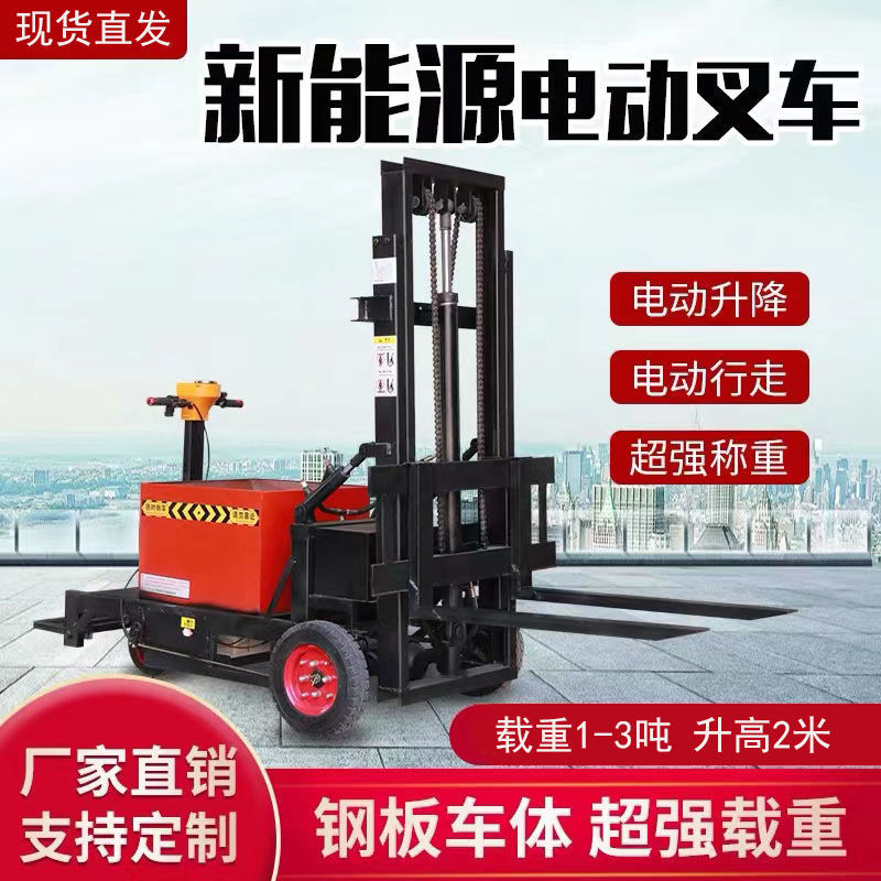 路氹填海区小型电动叉车1吨站驾式2吨液压升高铲车全自动仓储堆高车
